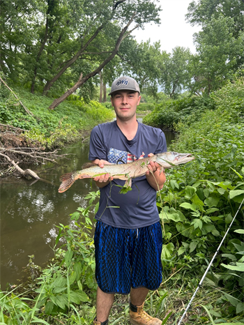 The Northern Pike is a voracious feeder, and one of the most predatory fishes in our waters. It is an opportunistic carnivore and eats mostly living organisms. The food of the young is mostly insects and their larvae, but as the fish matures, it feeds mainly on fish. Perch, drum, small suckers, sunfish and even smaller northern pike, make up a large part of the diet. Large pike have been known to eat small muskrats, ducklings and shore birds.